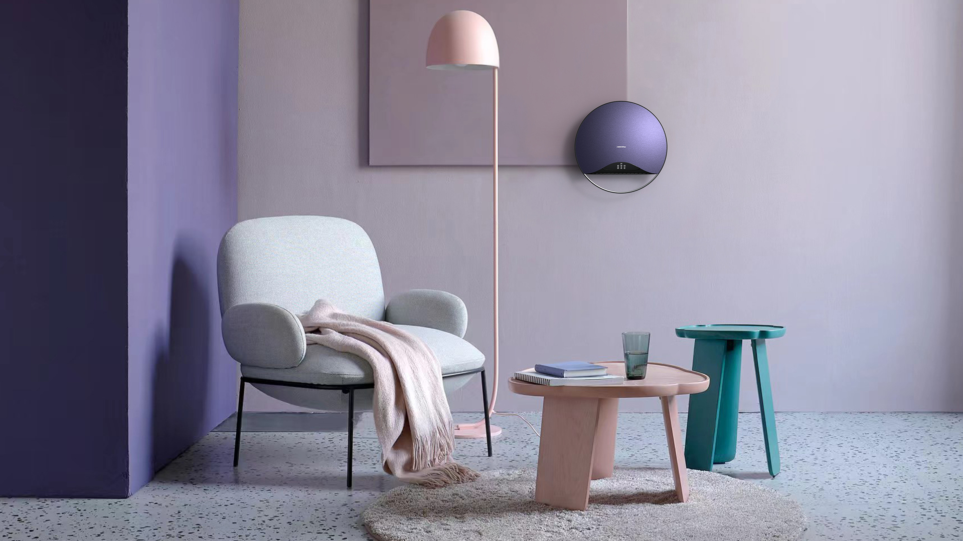 下方的弧形金屬桿兼顧功能性與設(shè)計感。實用性極強的同時在造型上與整體的圓形造型設(shè)計語言緊密呼應(yīng)。