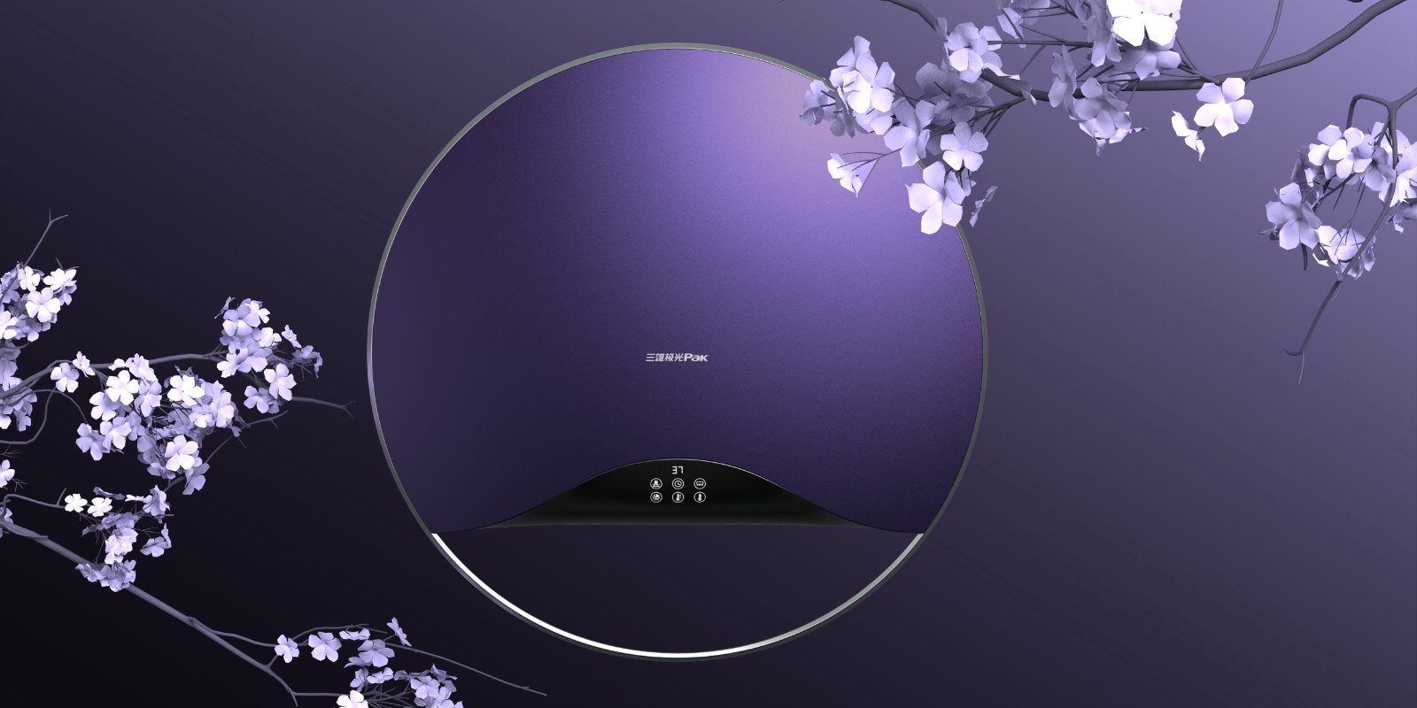 鏤空處象征流水,上方切面作為出風口隱藏在觸控面板后,與傳統(tǒng)暖風機相比,這一設(shè)計使得產(chǎn)品的正面造型在視覺上顯得更為簡潔流暢,也規(guī)避了正面外露風口容易積灰的弊端。