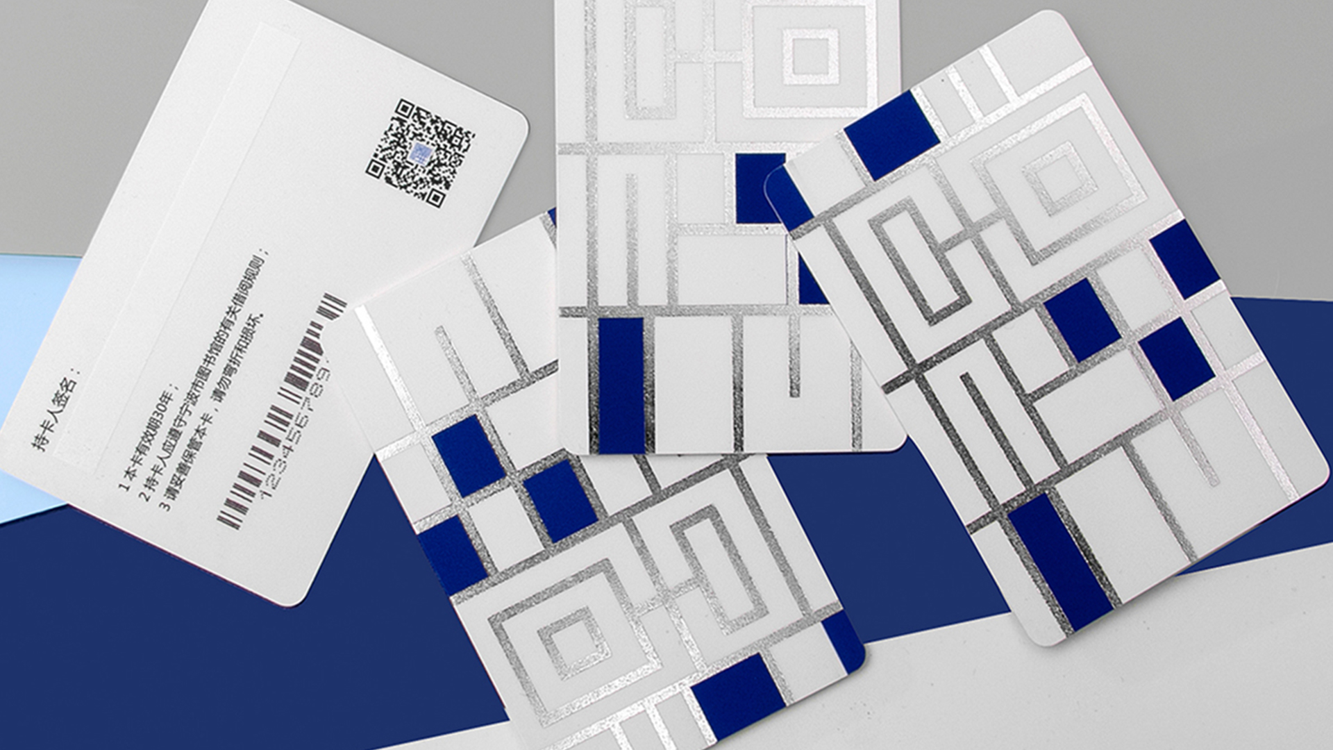 ②深深淺淺的藍色系塊面大膽拼貼,整體簡潔而富有童趣,營造出圖書館海納百川包容萬象的一面,無論你是什么人,走進圖書館,都是一個讀者?!靶吗^”系列圖形元素一確定,接下來與之前“甬圖”系列一樣,就是產(chǎn)品的元素應(yīng)用了。