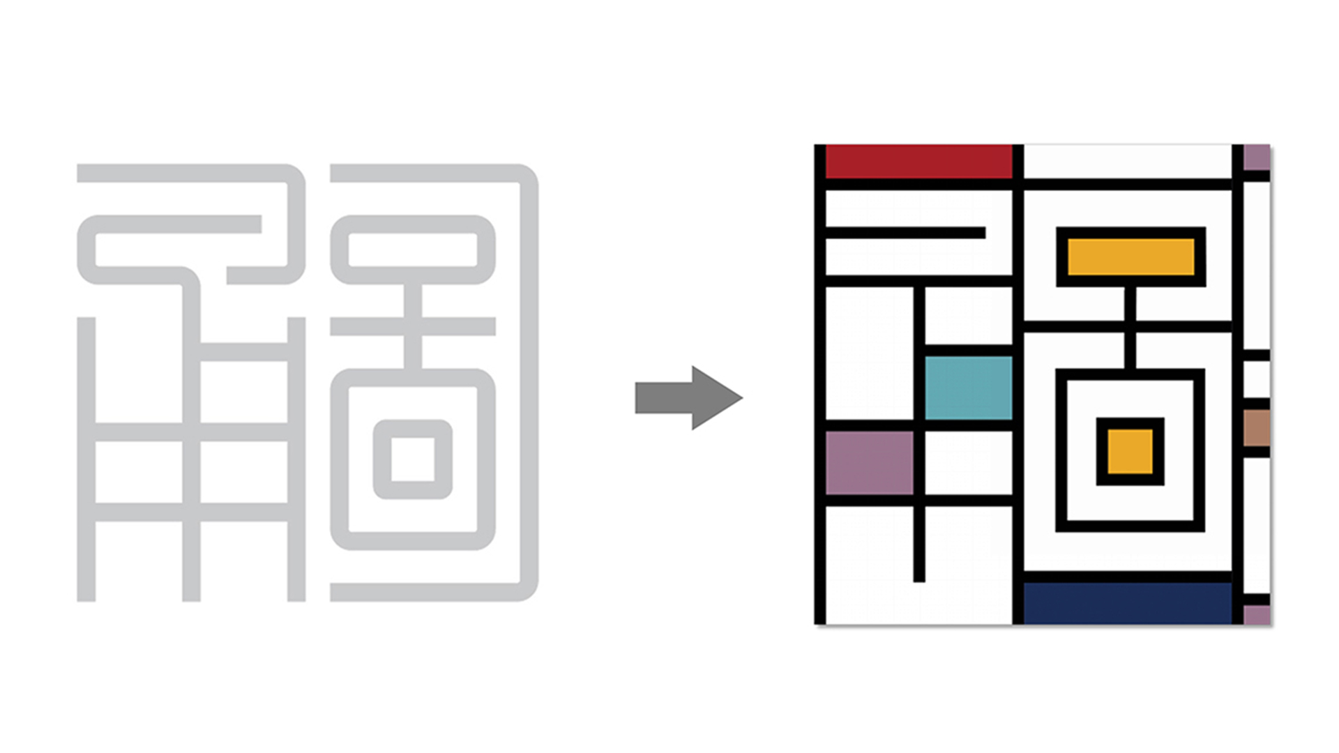 形式一:標(biāo)識整體分為兩部分,一部分是"甬圖"二字使用了"篆法"的變形,另一部分是"寧波圖書館"書法字體,設(shè)計師用現(xiàn)代手法最大程度的還原了任繼愈先生的字體原貌,使之更加平衡穩(wěn)重,可視為一種歷史文化記憶。將新館建筑中提取的線面元素與蒙德里安風(fēng)格結(jié)合,產(chǎn)生了最初版的應(yīng)用圖形。但是純粹的蒙德里安元素,在圖書館文創(chuàng)的應(yīng)用上總顯得有些許單薄,多次的更改與嘗試中,圖書館logo的出現(xiàn)讓設(shè)計師的眼睛亮了起來,同樣的塊面化元素,為什么不做一個結(jié)合呢?