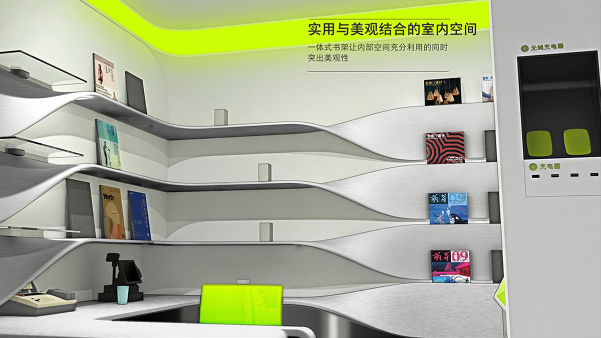 造型以現(xiàn)代簡約風(fēng)格為主,順應(yīng)現(xiàn)代市場和審美需求。簡潔的外觀、內(nèi)部流暢的曲線和燈光效果相呼應(yīng),凸顯產(chǎn)品的科技感同時又不顯得沉悶。多功能和模塊化設(shè)計更是人性化設(shè)計的主要體現(xiàn),由形式至意,從意到神韻,無不強調(diào)中國郵政的服務(wù)宗旨,以人為本。